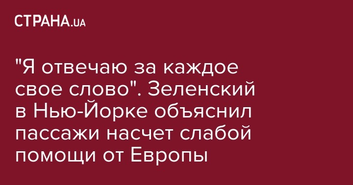 "Я отвечаю за каждое свое слово". Зеленский в Нью-Йорке объяснил пассажи насчет слабой помощи от Европы