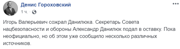 "Игорь Валерьевич сожрал Данилюка", - считает блогер из Днепра Денис Гороховский.