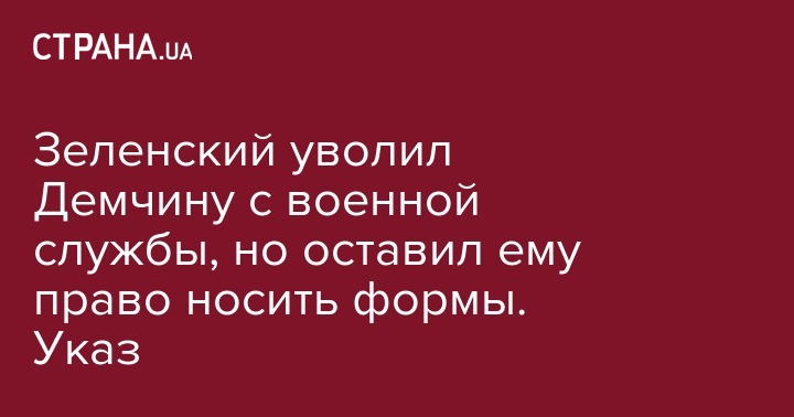 Зеленский уволил Демчину с военной службы, но оставил ему право носить формы. Указ