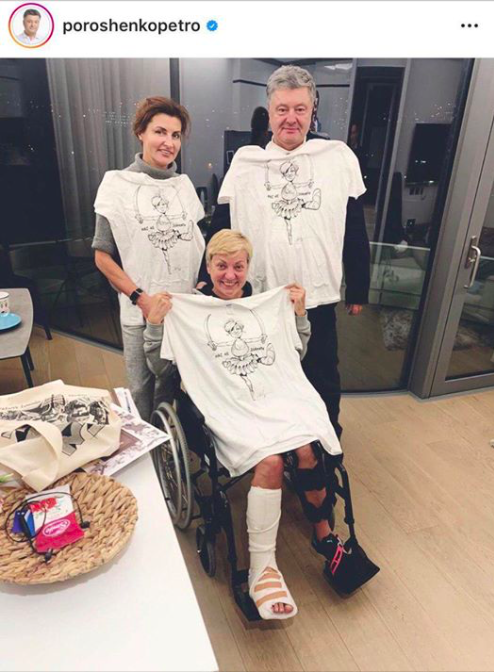 Напомним, что Порошенко навестил Гонтареву и подарил ей футболку с изображением экс-главы НБУ в образе балерины с саблями.