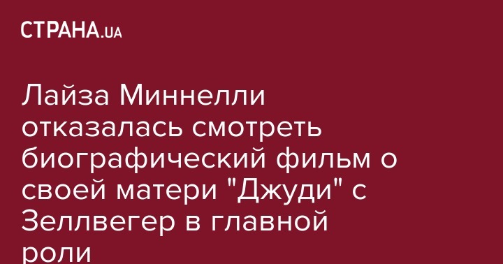 Актриса и певица Лайза Миннелли заявила, что не собирается смотреть фильм о своей матери, звезде Голливуда Джуди Гарленд, роль которой исполняет Рене Зеллвегер. Об этом сообщает TMZ.