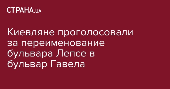 Сегодня в 10 утра завершилось голосование о переименовании бульвара Ивана Лепсе в честь Вацлава Гавела. За переименование высказалось большинство проголосовавших. Всего в голосовании приняли участие 5429 человек "За" переименование высказались 3414 чловек. "против" - 2005. Об этом сообщает "Радио Свобода".