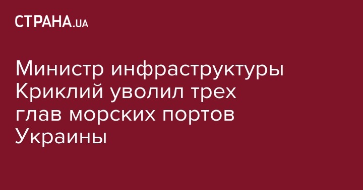 Глава Мининфраструктуры Владислав Криклий подписал приказы об увольнении руководителей Одесского, Черноморского и Белгород-Днестровского морских портов. Об этом сообщает пресс-служба ведомства.