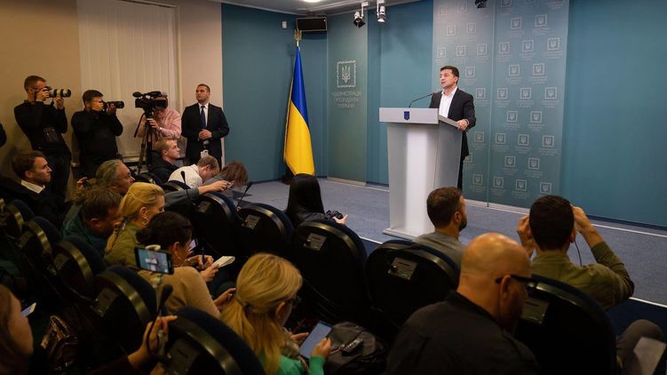 Владимир Зеленский вечером 1 октября вышел на брифинг в Офисе президента. Сначала он сообщил, что на днях начнется разведение сил в Петровском и Золотом - двух пилотных участках, которые были согласованы еще в 2016 году Путиным и Порошенко.