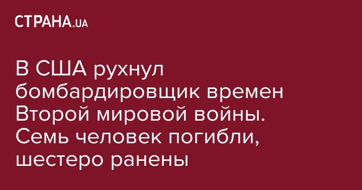 В США произошла авиационная катастрофа. Бомбардировщик B-17 времен Второй мировой войны рухнул в международном аэропорту "Брэдли" в Коннектикуте. При крушении погибло семь человек. По данным властей, на борту находилось 13 человек: 10 пассажиров и три члена экипажа.