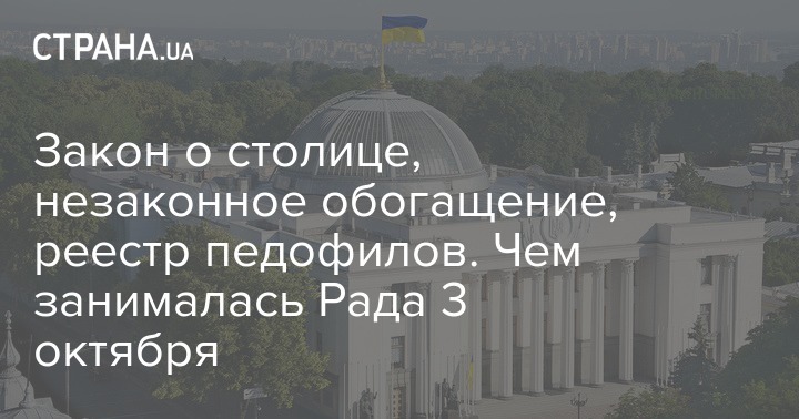 3 октября Верховная Рада проводит плановое пленарное заседание. Сегодня в повестке рассмотрение возвращения в Уголовный кодекс статьи о незаконном обогащении, четыре варианта проектов о городе Киеве. Запланировано рассмотрение и других проектов во втором чтении - о концессии, аренде госимущества, обязанности раскрыть структуру собственности провайдера "ЗЕОНБУД", а также проекты изменений Регламента Верховной Рады.
