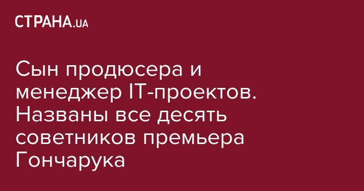 Сын продюсера и менеджер ІТ-проектов. Названы все десять советников премьера Гончарука