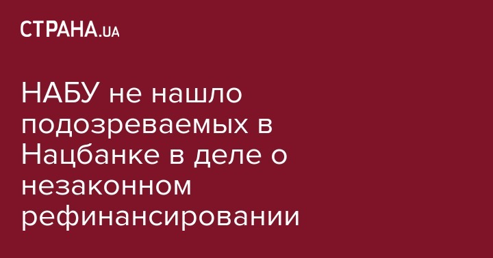 Глава Национального антикоррупционного бюро Украины (НАБУ) Артем Сытник заявляет об отсутствии подозреваемых в деле о незаконном выделении Национальным банком Украины (НБУ) рефинансирования семи банкам на 12 млрд грн в 2014-2015 гг, сообщает "Интерфакс-Украина".