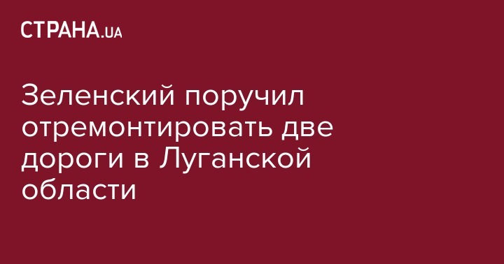 Президент Украины Владимир Зеленский своим указом поручил Кабинету министров страны безотлагательно отремонтировать автомобильные дороги общего пользования государственного значения в Луганской области на двух участках. Об этом говорится в тексте указа № 738/2019, опубликованном на сайте президента Украины в понедельник.