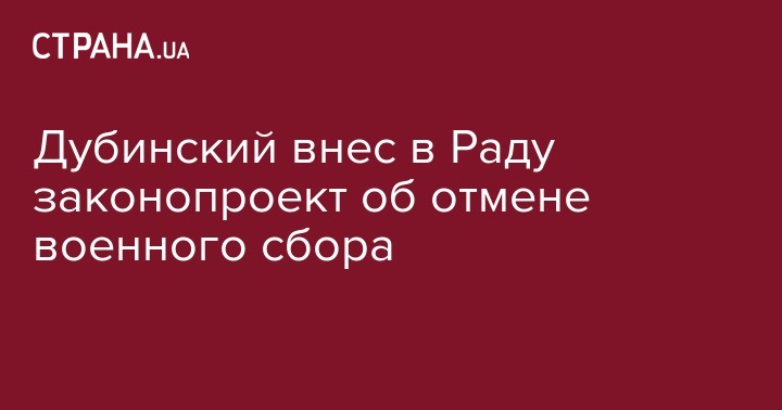 Дубинский внес в Раду законопроект об отмене военного сбора
