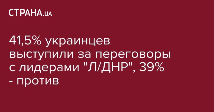 При этом идею начала официальных переговоров украинской власти с нынешним руководством ОРДЛО поддерживают 41,5% опрошенных, не поддерживают - 39% .