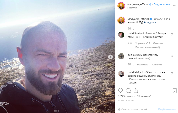 Судья на проекте Влад Яма 12 октября в Инстаграм опубликовал фото и видео. "Извините, но я на море" - подписал он пост. В комментариях у него тут же начали спрашивать, а как же эфир 13 октября. Но судя по тэгу "Скадовск" Яма успеет вернуться в Киев.