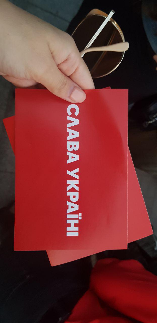 18:51 Активисты пришли к Офису президента, который сегодня уехал на Донбасс, и заклеивают его надписями "Слава Украине".
