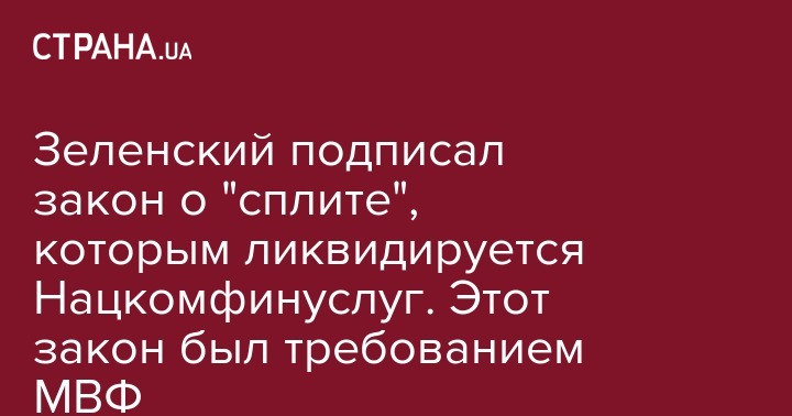 Зеленский подписал закон о "сплите", которым ликвидируется Нацкомфинуслуг. Этот закон был требованием МВФ
