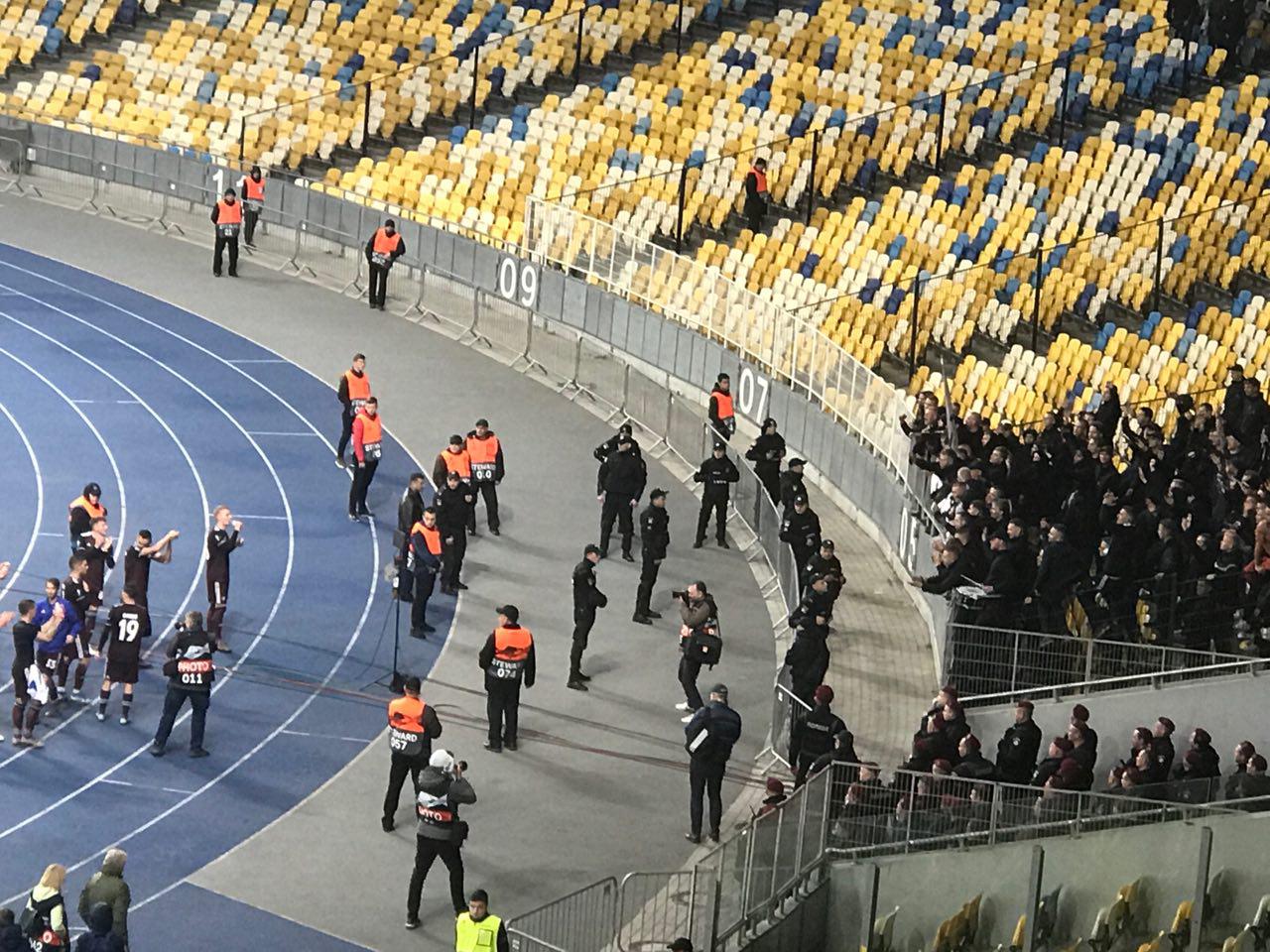 Затем игроки ФК "Копенгаген" отправились благодарить своих болельщиков, прилетевших на игру аж из Дании. Кстати, в Киеве на НСК был сегодня почти полный стадион.