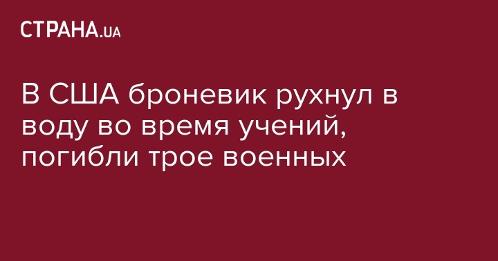 В Соединенных Штатах Америки при паденни бронеавтомобиля в воду во время учений погибли трое военнослужащих. Об этом сообщает Associated Press.
