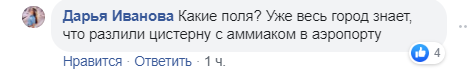Многие предполагают, что причиной ЧП была не обработка полей. "Какие поля? Уже весь город знает, что разлили цистерну с аммиаком в аэропорту", – пишет Дарья Иванова.