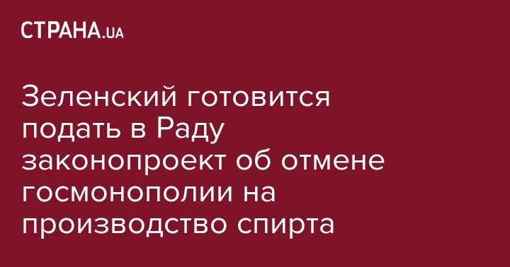 "Президент Украины Владимир Зеленский подает в Верховную Раду Украины законопроект "О внесении изменений в Закон Украины "О государственном регулировании производства и оборота спирта этилового, коньячного и плодового, алкогольных напитков, табачных изделий и топлива" по либерализации деятельности в сфере производства и оборота спирта этилового", - идет речь в заявлении.