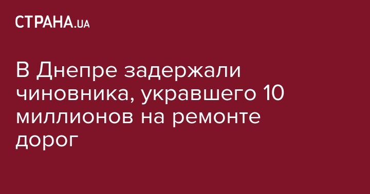 В Днепре задержали чиновника, укравшего 10 миллионов на ремонте дорог