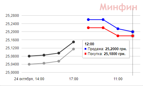 | Альфа-банк | 25 грн. | 25,30 | 12:00 |