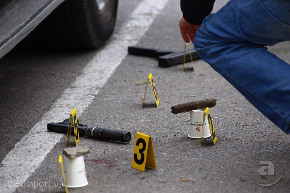 Стрелок сразу отъехал во дворы здесь же на Клочковской, заметая следы (отпечатки и т. д), успел поджечь свой автомобиль и выдвинуться на Южный вокзал чтобы покинуть город. Это говорит о хладнокровии и опыте убитого. Полиция сработала достаточно оперативно и им удалось не дать преступнику уйти".