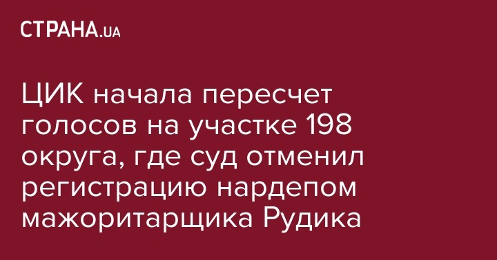 После этого Центральная избирательная комиссия сообщила об отмене регистрации народным депутатом Украины самовыдвиженца Сергея Рудика по результатам внеочередных парламентских выборов 21 июля в одномандатном избирательном округе №198.