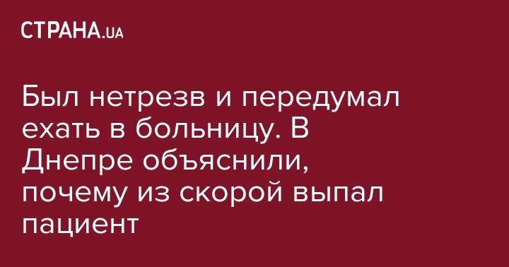 Был нетрезв и передумал ехать в больницу. В Днепре объяснили, почему из скорой выпал пациент