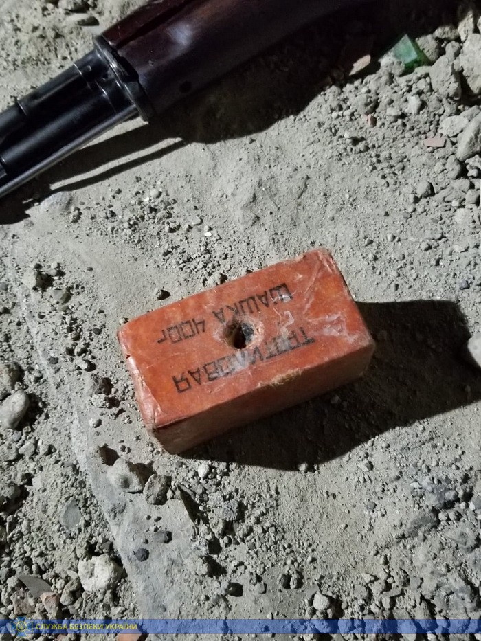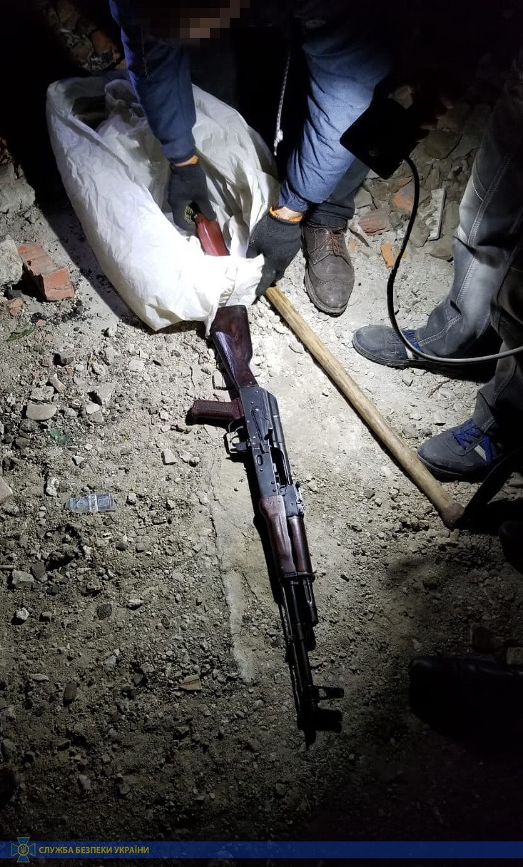 В Бориславе схрон был обустроен в нежилом здании. Из него правоохранители изъяли 400-граммовую тротиловую шашку, автомат АК-47, четыре гранаты РГД-5 и Ф-1 с запалами к ним. Оружие и боеприпасы были упакованы в мешки и спрятаны между бетонными плитами.