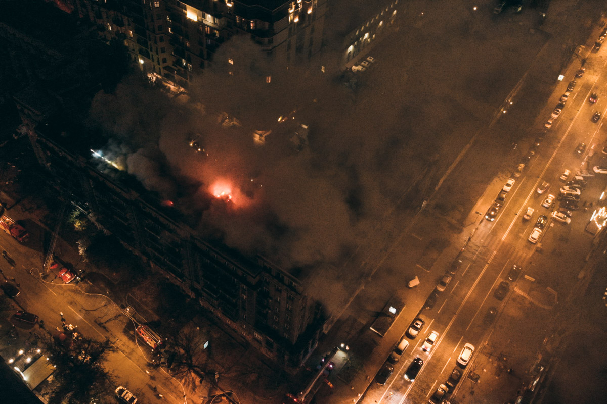 На месте происшествия работает около 22 единиц основной и спецтехники, задействовано около 80 спасателей ГСЧС. По состоянию на 22:50 пожар еще не локализовали. К дому прибыли взрывотехники.