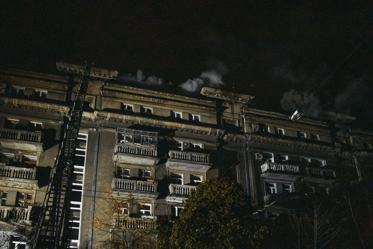 Улицу Пирогова перекрыли для проезда транспорта. Изначально огонь распространялся только на крышу дома. Однако позже пламя перекинулось на лестничные пролеты верхних этажей.