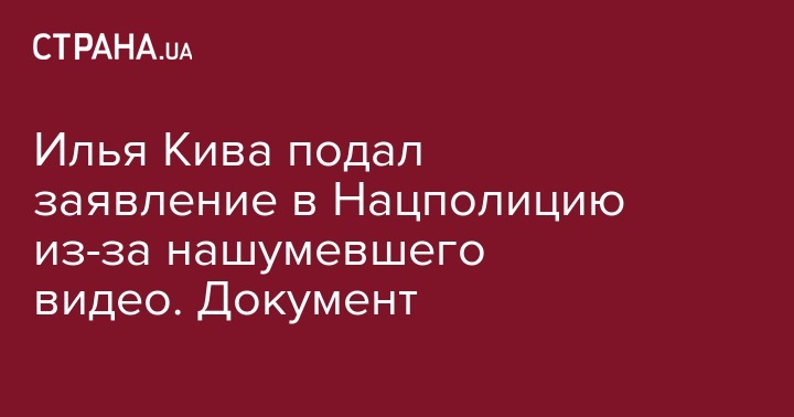 Илья Кива подал заявление в Нацполицию из-за нашумевшего видео. Документ