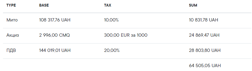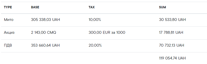 3 этап: расчет таможенного налога, акцизного сбора и ПДВ и итоговая стоимость "растаможки".