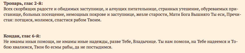 Всех скорбящих радость. Текст молитвы