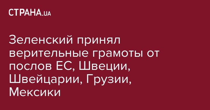 Зеленский принял верительные грамоты от послов ЕС, Швеции, Швейцарии, Грузии, Мексики