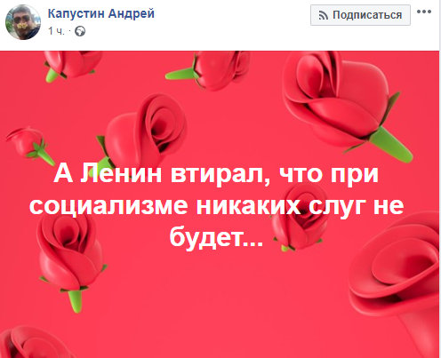 "А Ленин втирал, что при социализме никаких слуг не будет..." - написал обозреватель Андрей Капустин.
