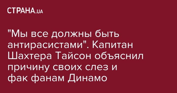 Как сообщалось, матч Шахтер - Динамо омрачил расистский скандал. Фаны Динамо "ухали", как обезьяны, в адрес капитана горняков Тайсона, а также кричали грубые ругательства. Бразилец расплакался и показал болельщикам средний палец, из-за чего был удален с поля.