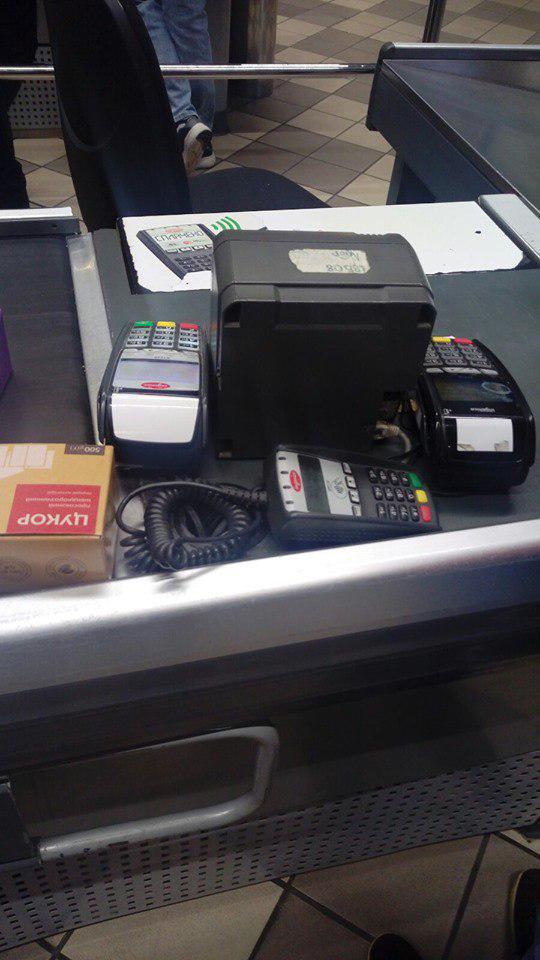 Во многих супермаркетах сегодня принимали к оплате только наличку.
