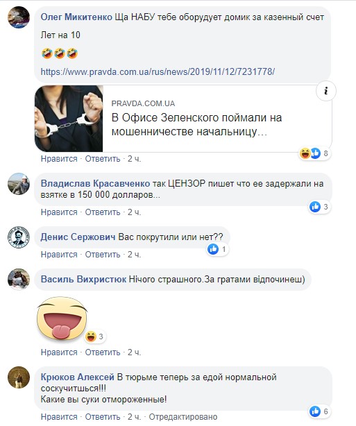 "Ща НАБУ тебе оборудует домик за казенный счет. Лет на 10", "Ничего страшного. За решеткой отдохнешь", "В тюрьме теперь за едой нормальной соскучишься!!!", " Большинство крыс всеядны. Однако у разных видов существуют определённые предпочтения. Некоторые предпочитают растительную пищу — семена, овощи, фрукты, а некоторые доллары..." - пишут люди в комментариях под постом.