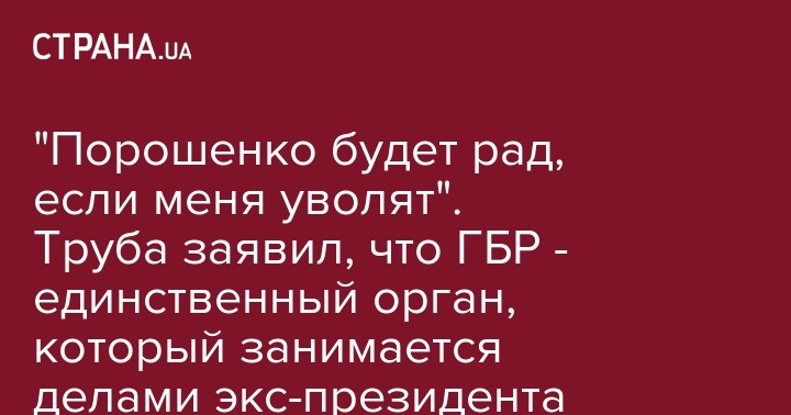 Глава ГБР Роман Труба заявил, что бывший президент и нардеп Петр Порошенко будет доволен, если он будет уволен, передает УНИАН.
