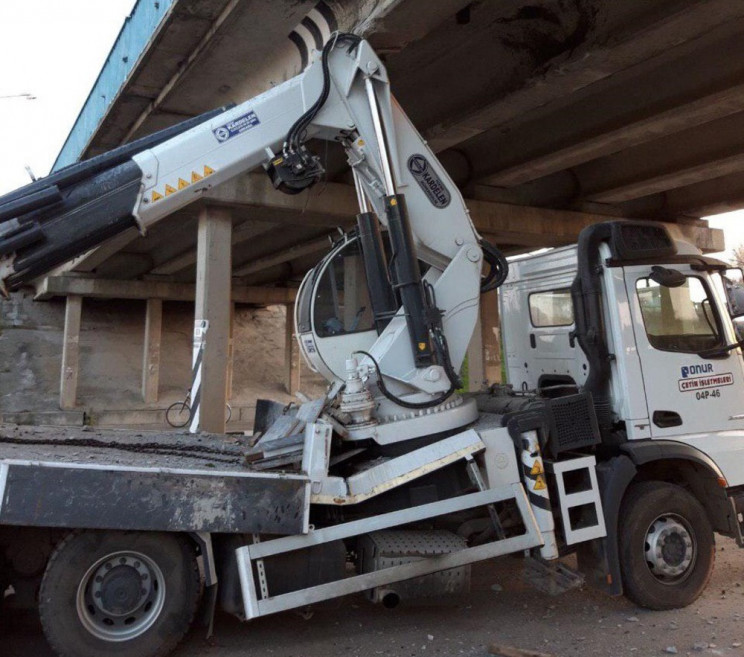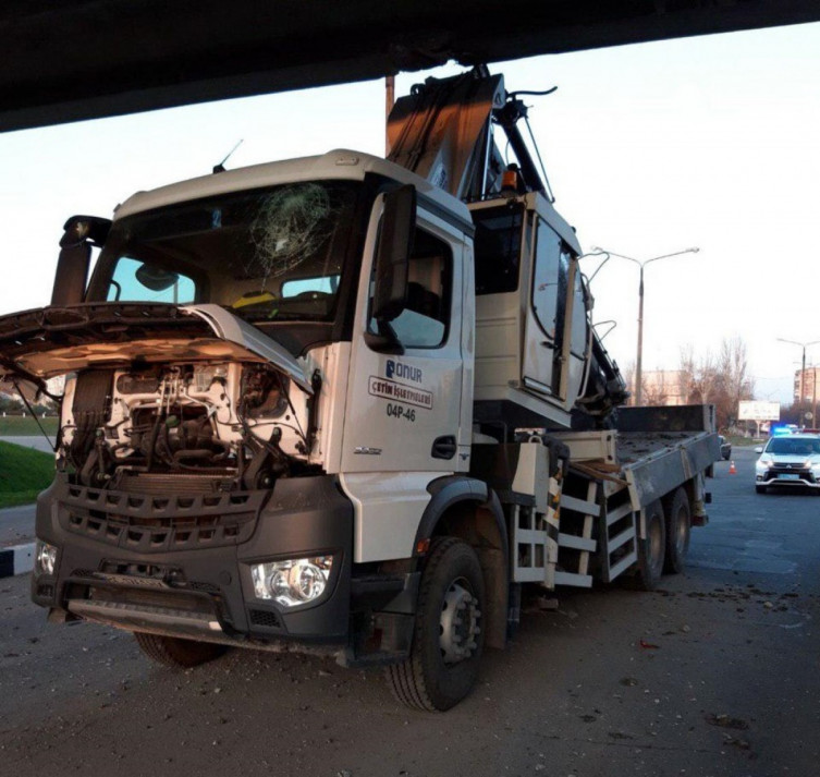 Вероятнее всего, кран врезался в мост из-за того, что был частично с выдвинутой стрелой. В результате этого транспорт согнулся, а на мосту появилась трещина.