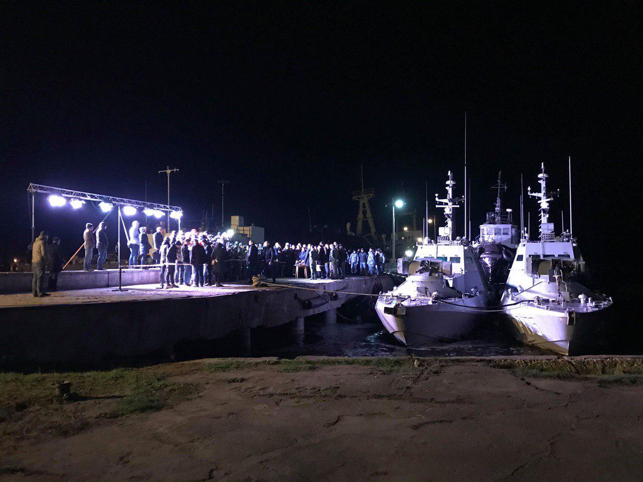 "Я очень рад, что наши военные катера на месте. Как мы и обещали, мы вернули наших моряков, и вернули наши катера. То, что мы увидели, действительно не хватает (на судах – Ред.) и оборудования частично, и не хватает, мы говорили с адмиралом и некоторые вещи я не могу сказать, части вооружения. Я увидел состояние, будет расследование, мы увидим все детали. Мы обязательно обратимся к российской стороне, чтобы нам вернули всё, что там есть", - сказал он на брифинге в среду ночью в Очакове после осмотра вернувшихся в Украину трех захваченных РФ год назад кораблей.