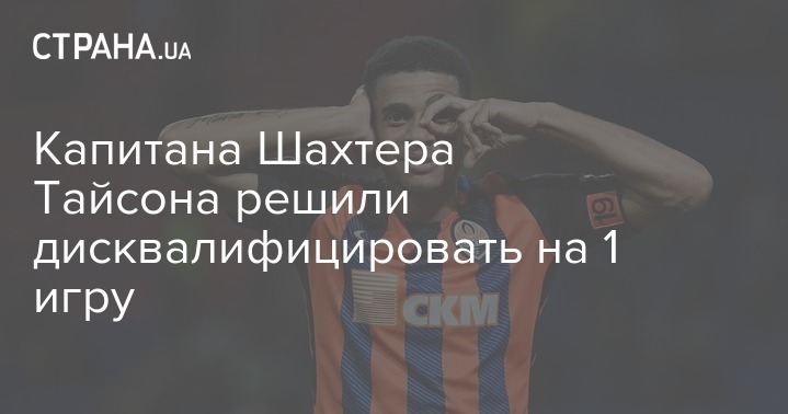 Полузащитник Шахтера Тайсон за показанный средний палец фанатам Динамо, на фоне расистского скандала, получил 1 игру реальной дисквалификации и 2 - условно.