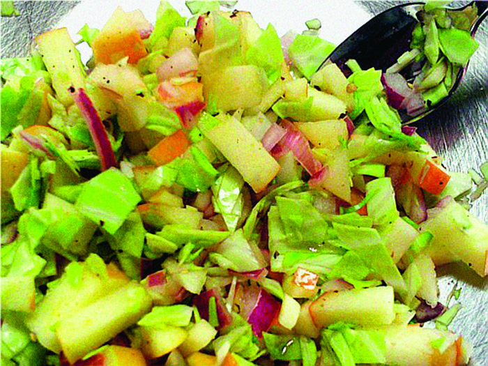 Для приготовления салата также подойдут другие ингредиенты: капуста, яблоки, лук-перо и заправка по вкусу. Это может быть яблочный уксус, сахар, соль.
