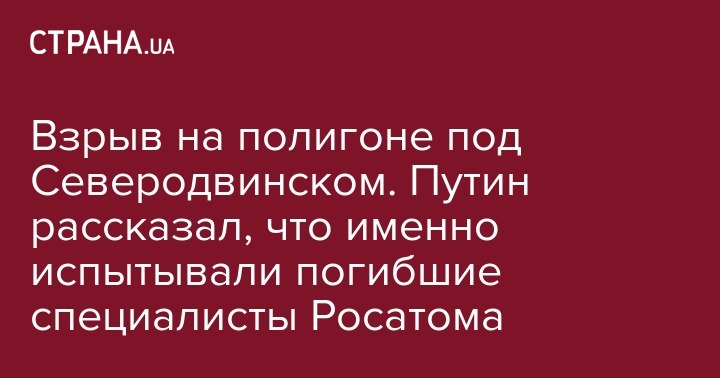 Обращаясь к семьям погибших, он добавил, что погибшие специалисты "вели сложнейшее, ответственное и критически важное направление". По словам президента РФ, "речь идет о самых передовых и не имеющих мировых аналогов технических идеях и решениях, об оружии, которое призвано обеспечить суверенитет, безопасность для России на десятилетия вперед, мир для наших детей, для ваших детей, которые растут у вас, гордятся по праву своими отцами".
