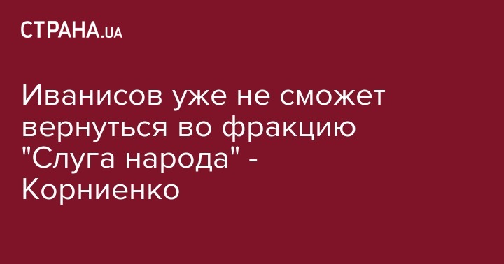 Нардепа Романа Иванисова, который был осужден за изнасилование, уже не смогут вернуть во фракцию "Слуга народа". Об этом заявил глава партии "Слуга народа" и первый заместитель председателя фракции Александр Корниенко в эфире радио "Новое время", передает УНН.