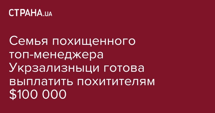 Семья похищенного топ-менеджера Укрзализныци готова выплатить похитителям $100 000