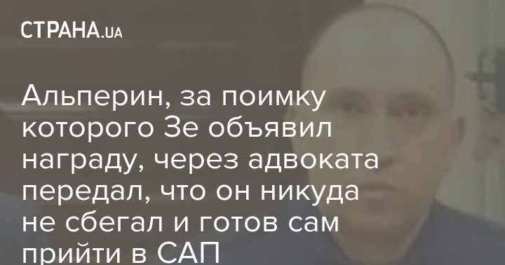 Альперин, за поимку которого Зе объявил награду, через адвоката передал, что он никуда не сбегал и готов сам прийти в САП