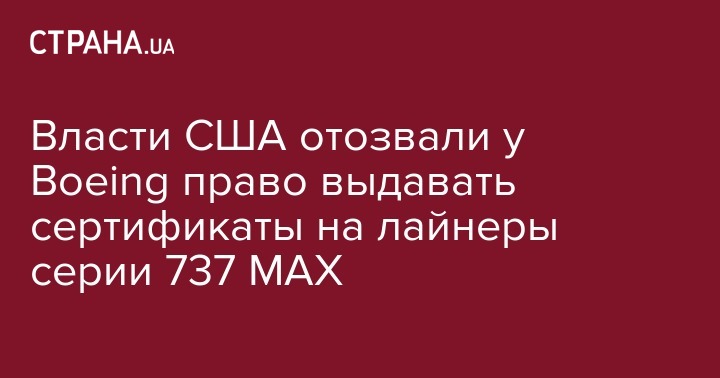 В письме, направленном компании Boeing, FAA заявило, что "общественные интересы и интересы безопасности в области торговли авиационной техникой требуют, чтобы управление сохранило за собой полномочия по выдаче сертификатов летной годности и экспортных сертификатов летной годности для всех самолетов 737 MAX". Ранее агентство проводило эту работу совместно с компанией-производителем, как передает Интерфакс.