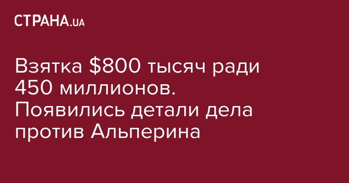 По его данным, "организатором этого схематоза является Вадим Альперин - глава самого мощной контрабандной группировки в Украине - на счетах подконтрольных ему компаний детективы еще в 2017 году арестовали 450 млн.грн". "Именно для разблокирования этих средств Альперин и предложил взятку в размере $800 тыс. на которой и погорел. Впоследствии суд отпустил его под залог, однако своего ареста контрабандист пока не дождался - вчера вечером в результате утечки информации (возможно из САП, возможно через суд) он был предупрежден и скрылся в неизвестном направлении", - пишет бизнесмен.