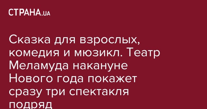 В Киеве в канун новогодних праздников - 22, 23 и 24 декабря - Театр Александра Меламуда поставит сразу три спектакля подряд. Каждый зритель ощутит настоящее новогоднее чудо, посетив в Октябрьском дворце постановки на любой вкус: от философской сказки для взрослых "Дракон" до музыкальной комедии в бродвейском духе "Весна для Гитлера" и легкого мюзикла "Серенада Солнечной Долины" про настоящую любовь.